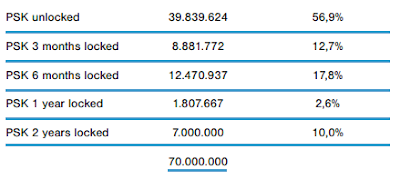 オンライン手続きでは、投資家自身が投資適格を決定する責任があります。 ETH / PSK変換は、販売の1週間前に発表されます。 ICOが終了した後、収集された寄付額は、タイムラインを尊重したプロジェクトの正しい配送を保証するために、CHF、€、BTCおよびETHに分配される。市場でのトークンの総量は7千万になります。配布は次のようになります: